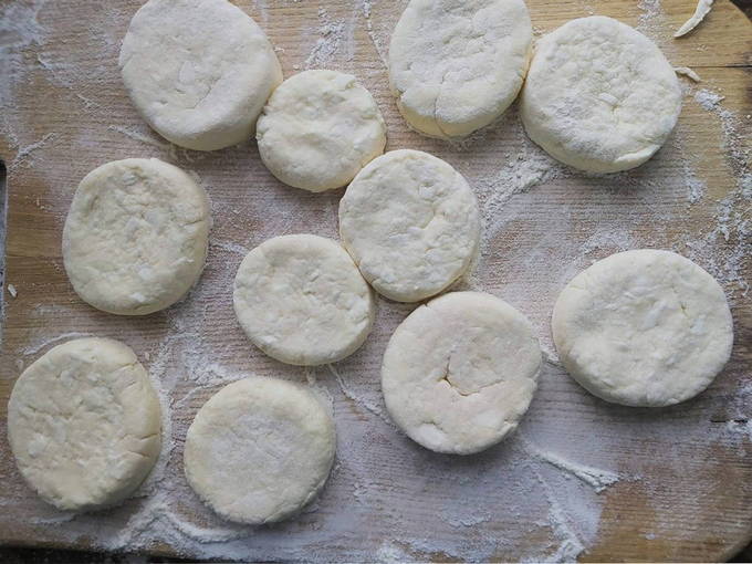 - Voeg de benodigde hoeveelheid bloem toe om een voldoende dik deeg te maken waarvan je ronde cheesecakes kunt vormen.