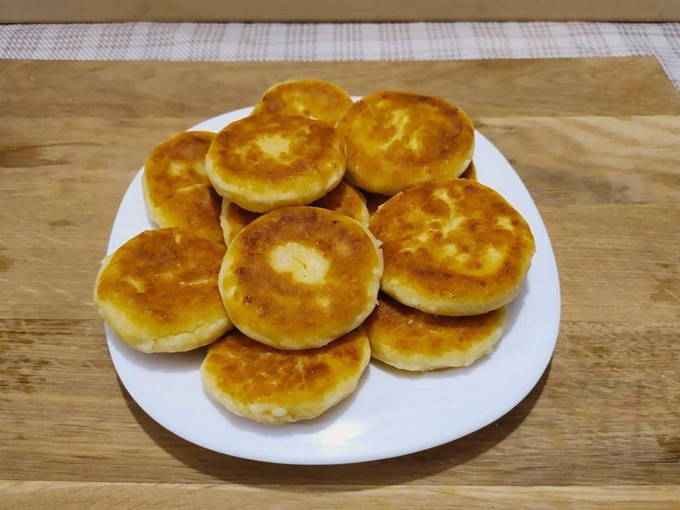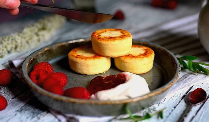 In dit recept wordt in plaats van gewone kwark ricotta kwark gebruikt: het is malser en sappiger van consistentie, dus de kaaskoekjes komen eruit en smelten gewoon in de mond.Dit gerecht wordt geserveerd met jam of yoghurt.