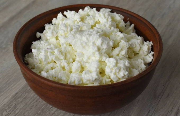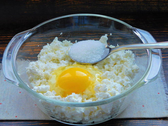 - Aan de wrongelmassa wordt een beetje zout, zoetstof en rijstmeel toegevoegd. Meng het deeg grondig en laat het enkele uren in de koelkast staan.
