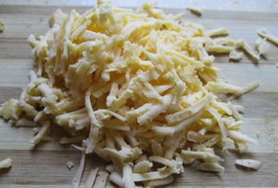 - Wrijf eerst de kaas op een fijne of middelgrote rasp.