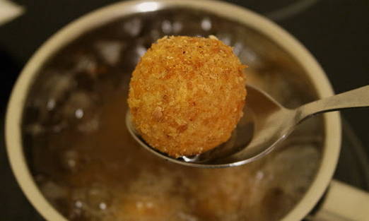 - Leg eerst de hete ballen op keukenpapier om overtollig vet te absorberen. Dan kan het voorgerecht geserveerd worden!