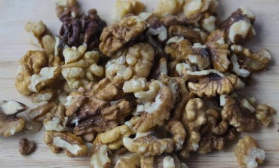 - We maken de walnoten schoon en malen ze tot kruimels. Dit is nodig om te paneren.