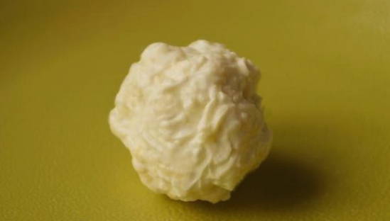 - Van de kaasmassa vormen we kleine ronde balletjes. Ze moeten strak en glad zijn.