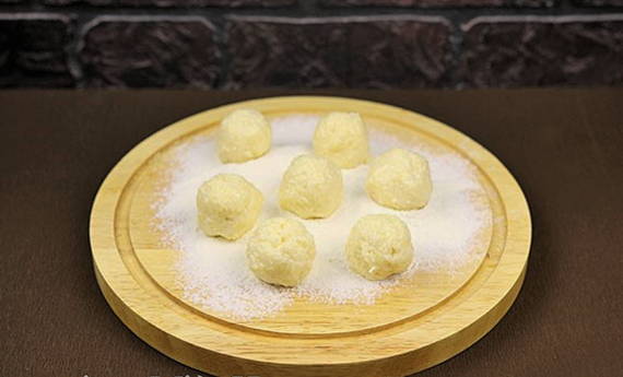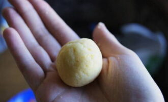 We vormen gladde ballen van klein formaat van dicht kaasdeeg.
