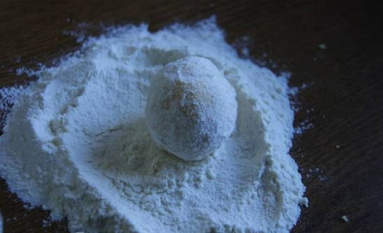 Dan rollen we de ballen in een kleine hoeveelheid bloem.
