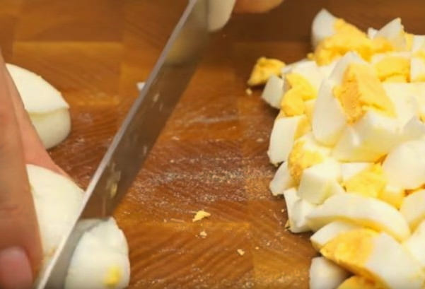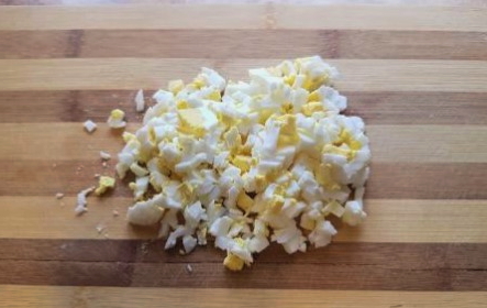 - Kook kippeneieren, koel ze af en pel ze. Maal het product vervolgens met een mes.