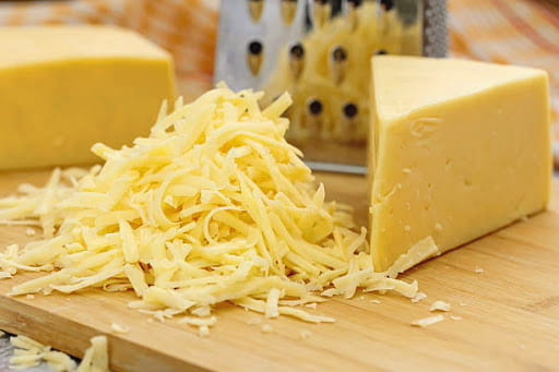 - Harde kaas kan op een grove rasp worden geraspt of in kleine blokjes worden gesneden.