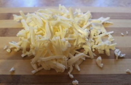 Rasp een stuk harde kaas met grote kruidnagels. We sturen het ingrediënt naar een diep bord.