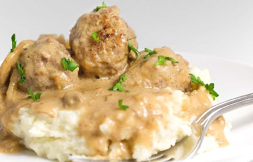 Kipgehaktballetjes met champignonsaus