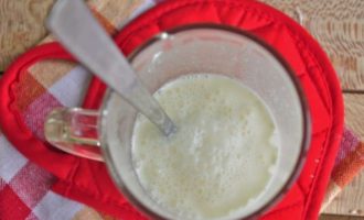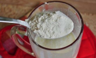 Terwijl de gehaktballen stoven, verdun de zure room in een half glas water, meng goed.