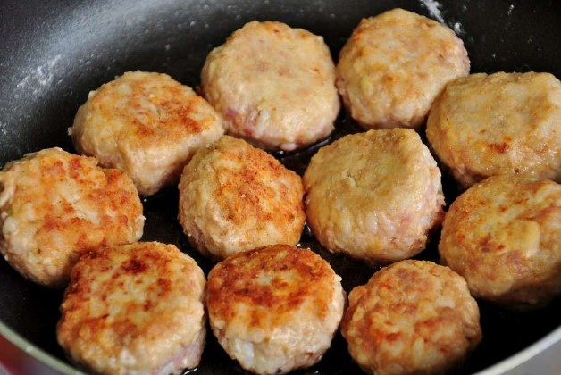 - Verhit plantaardige olie in een koekenpan en vorm ronde gehaktballen van gehakte vis. Leg ze in een koekenpan met verwarmde olie en bak ze goudbruin.