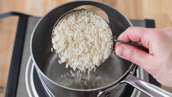 - Spoel de rijst af en kook gaar in gezouten water. U hoeft de gekookte granen niet af te spoelen.