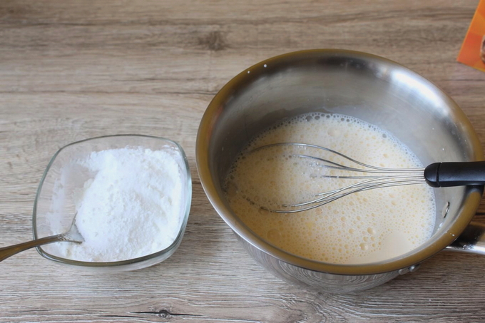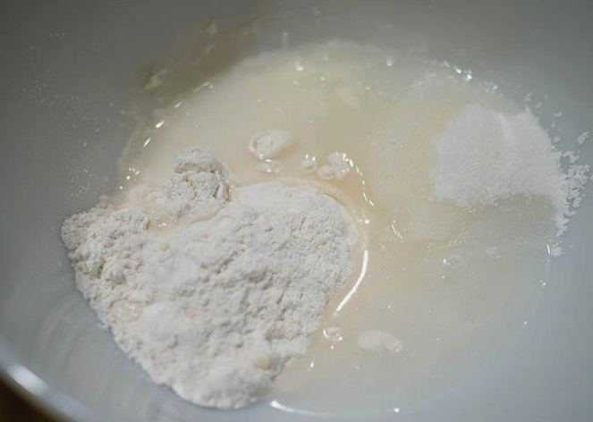 - Los de bloem op in een beetje koud water en roer met een garde om te voorkomen dat het gaat brouwen.