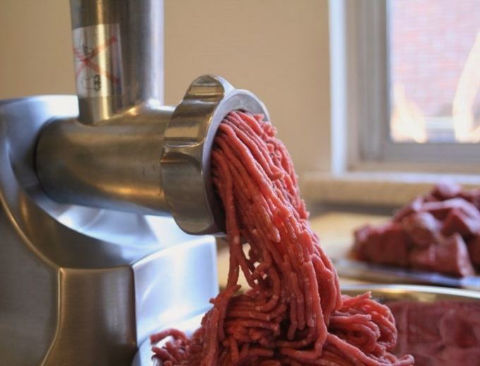 - Het is beter om zelf gehakt te maken van kipfilet en pulp van de poten: in een vleesmolen het vlees met uien en een kleine hoeveelheid witbrood (brood) doorrollen.