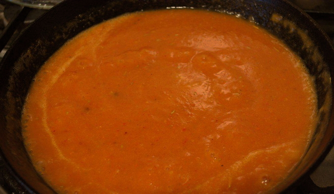 - Bak groenten, voeg zure room toe, verdun de jus met heet water zodat deze middelmatig dik is.