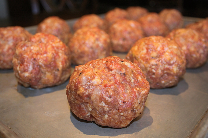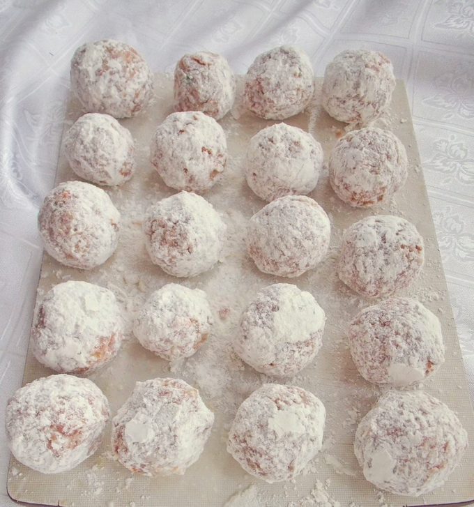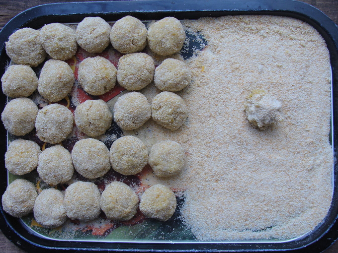 - Blinde ballen van gehakt, rol ze in bloem.