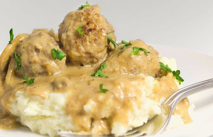 - Eet gehaktballen met hete jus, het beste van alles met aardappelpuree.