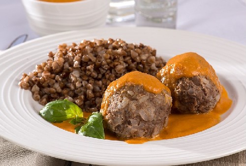 Als je van het avondeten wat gekookte boekweit in de koelkast hebt staan en er ligt een stuk gehakt in de vriezer, dan kun je proberen dit eenvoudige en stevige gerecht te bereiden: sappige gehaktballetjes met boekweit.