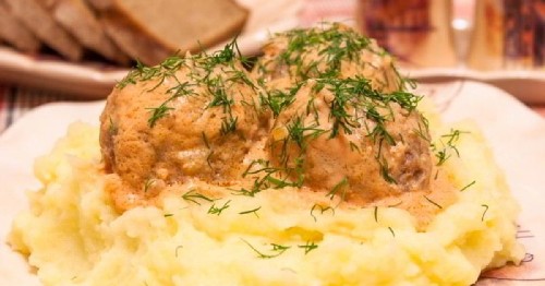 - Een smakelijk en bevredigend gerecht is klaar. Bij het serveren kunt u desgewenst wat fijngehakte dille toevoegen aan de gehaktballetjes met aardappelen.