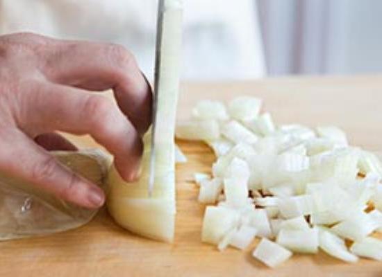 - Pel de uien en hak ze fijn.