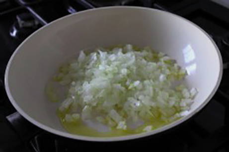 - Hak de ui fijn en bak tot hij zacht is.
