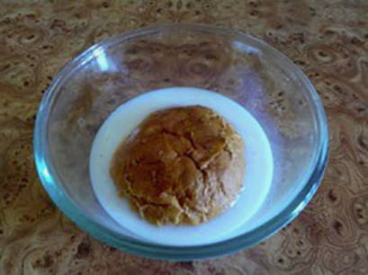 - Week de rol 5 minuten in melk en kneed hem dan met je handen.