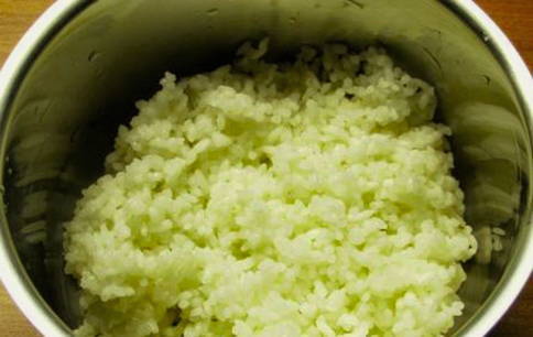 - Kook de rijst in gezouten water tot hij half gaar is.