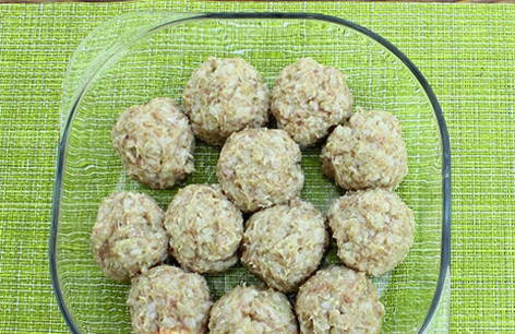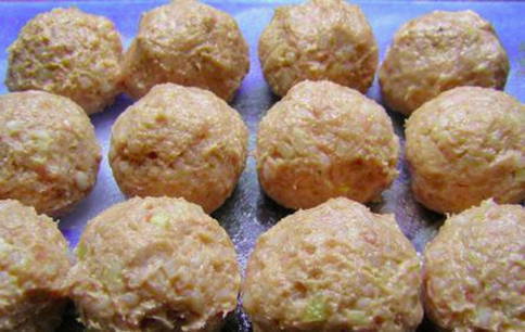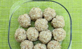 Vorm van de resulterende massa ronde gehaktballen, leg ze in een vorm die is ingevet met plantaardige olie. Plaats de gehaktballen in een voorverwarmde oven op 200 graden gedurende 20-25 minuten.