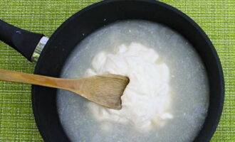 - Voeg vervolgens zure room toe, roer en kook de saus tot hij ingedikt is. Giet vervolgens de saus over de gehaktballen. Sudderen tot ze gaar zijn op laag vuur gedurende 15 minuten.