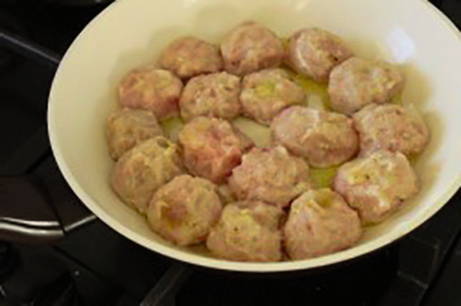 - Doe dan de gehaktballetjes in de pan.