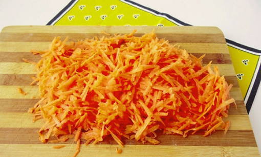 - Bereid de saus voor. Schil de uien en wortelen, snijd de ui in halve ringen, rasp de wortelen. Bak groenten in plantaardige olie.