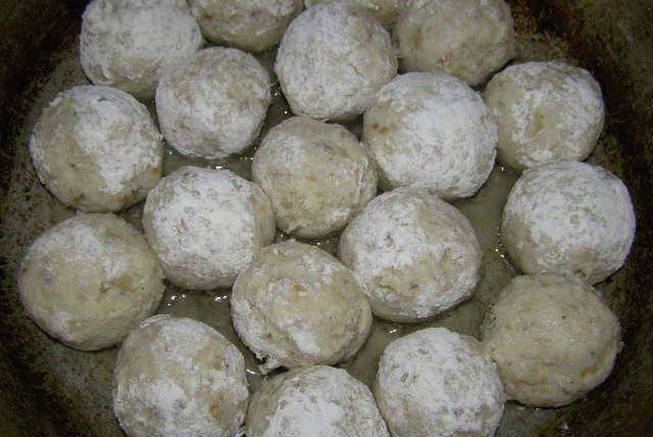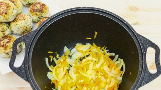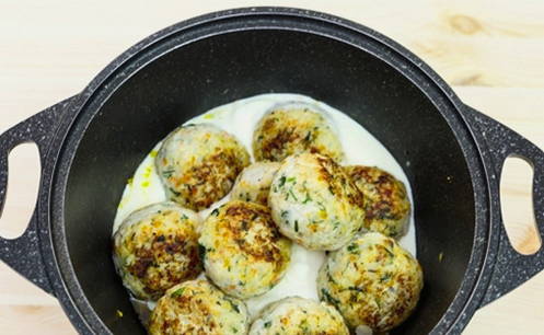 - Vorm kleine gehaktballetjes van de resulterende massa en bak ze in plantaardige olie tot ze aan alle kanten goudbruin zijn.