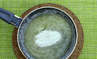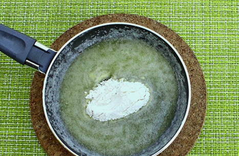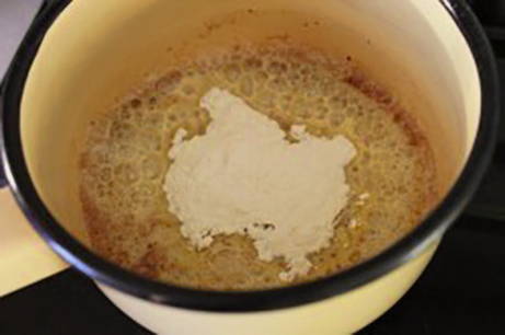 Smelt de boter in een andere koekenpan, voeg dan de bloem toe en bak 1 minuut.