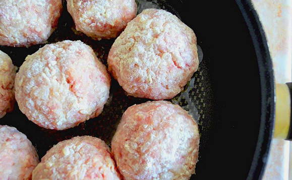 - Verhit plantaardige olie in een koekenpan, bak de gehaktballetjes aan alle kanten goudbruin.