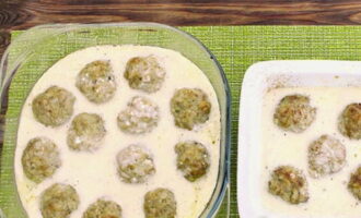 Breng de inhoud van de ene pan over in de andere, voeg naar smaak zout en peper toe. Zet de saus op middelhoog vuur en kook nog 3-5 minuten. Giet vervolgens de gehaktballetjes met zure roomsaus en zet ze 30-40 minuten terug in de oven.