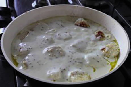 - Giet de zure room in een pan en laat de gehaktballetjes 20-25 minuten op matig vuur sudderen.