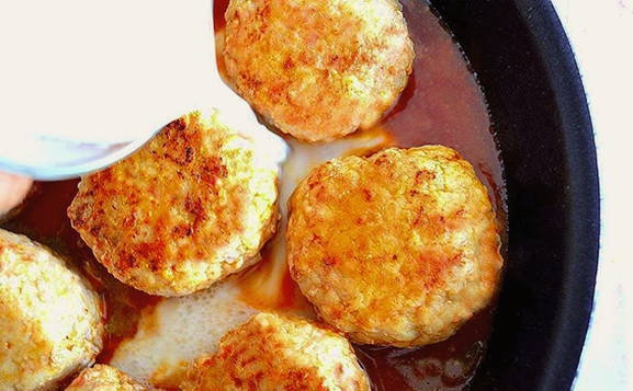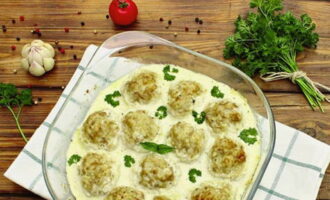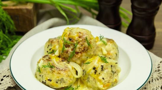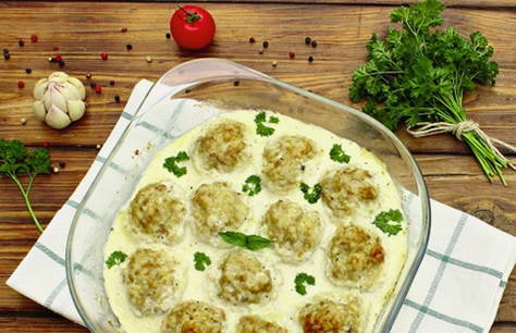 - Zachte gehaktballetjes met kaas in zure roomsaus in de oven