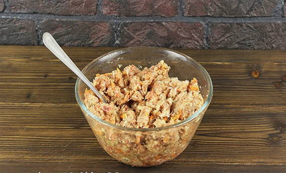 - Kneed de vleesmassa goed door met rijst en groenten.