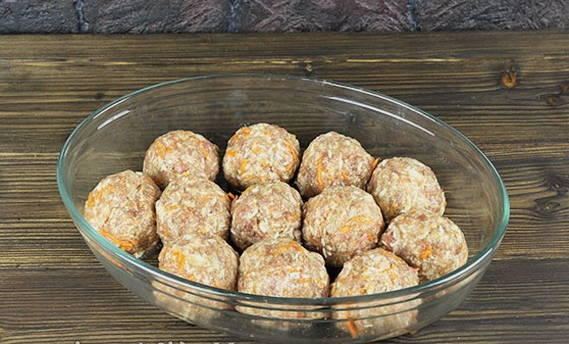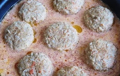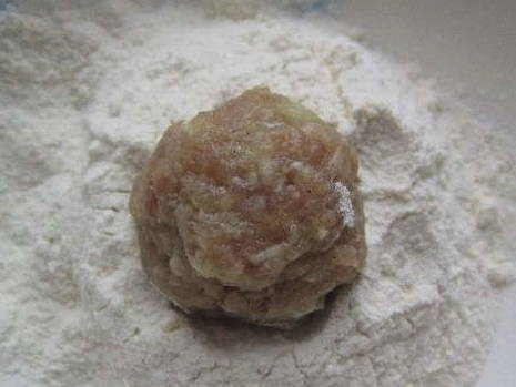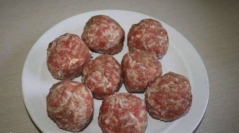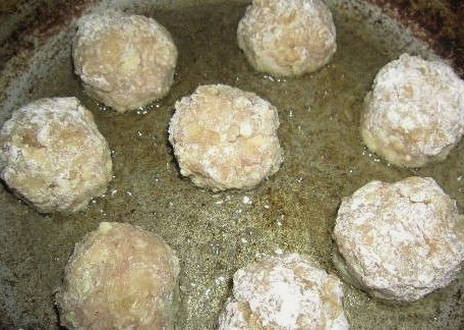 - Wij maken ronde gehaktballen van gehakt, eieren, zout en kruiden. Rol ze door de resterende bloem.