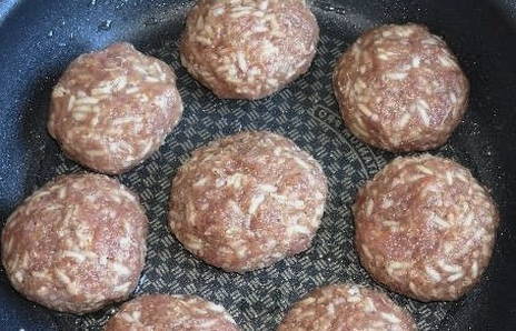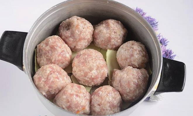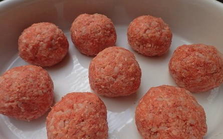 - Van het bereide gehakt boetseren we balletjes van gelijke grootte. We leggen ze op de kool.