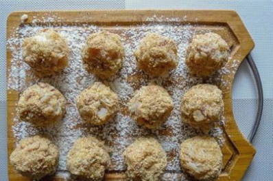 - We boetseren kleine balletjes van het resultaat. Rol ze door paneermeel.