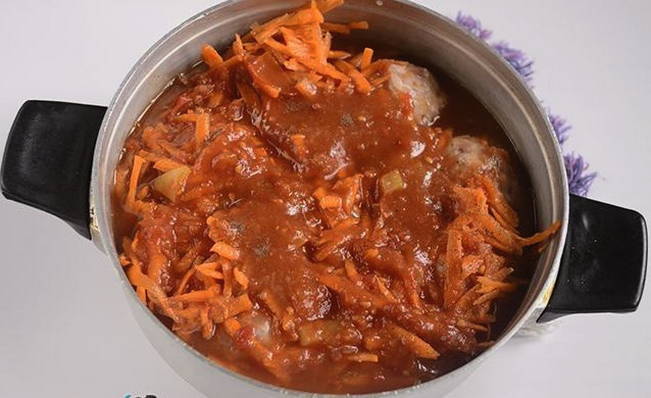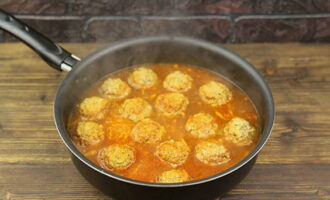 - We combineren tomatenpuree met een kleine hoeveelheid niet steil kokend water. Giet het mengsel bij de gehaktballen.