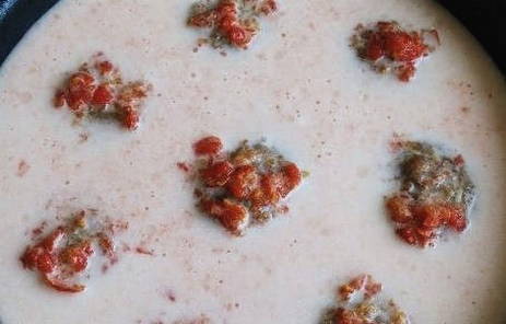 Voeg tomatenpuree toe aan de schaal en giet er gekookt water bij.