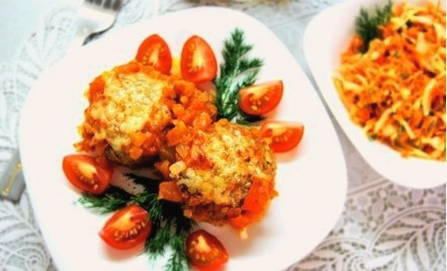 Thuis maak je heerlijke gehaktballetjes van visfilet. Het gerecht kan worden aangevuld met tomatensaus. Delicaat en smakelijk product wordt geserveerd met verse groenten of andere garnering naar smaak.