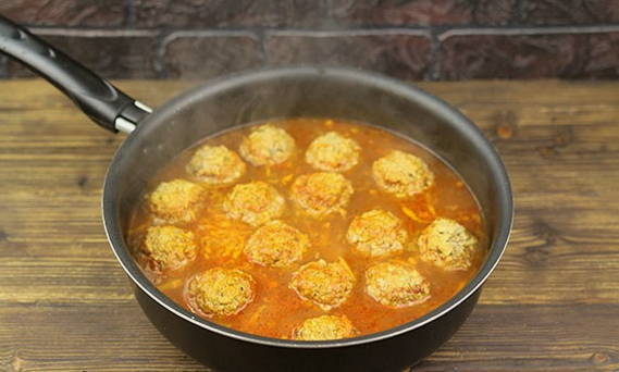 Zelfgemaakte gehaktballen kunnen in een pan worden gekookt. Sudder je lunchgerecht in tomatensaus. Dit zal sappigheid en pikantheid aan het product toevoegen. Serveer met aardappelen, pasta of ontbijtgranen.
