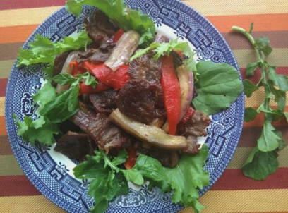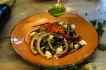 Heerlijke warme salade met aubergine en rundvlees