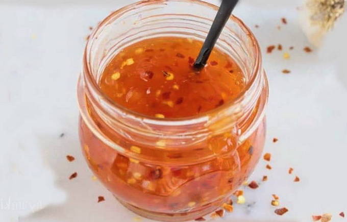 - Bereid de saus apart voor. Roer hiervoor tomatenpuree met azijn, citroensap en suiker.