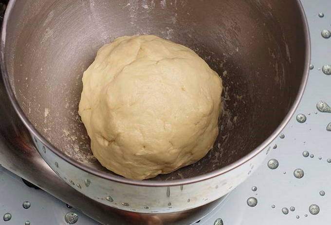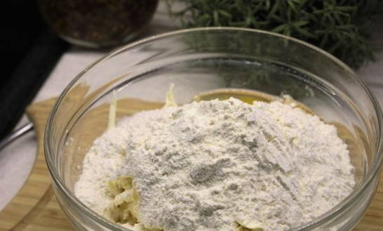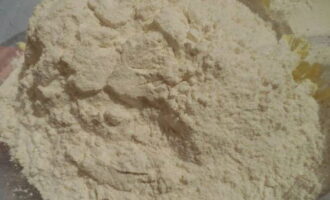- Voeg de gezeefde bloem met bakpoeder toe. Kneed de producten tot een stevig en elastisch deeg.