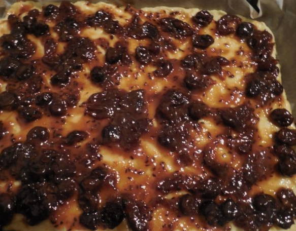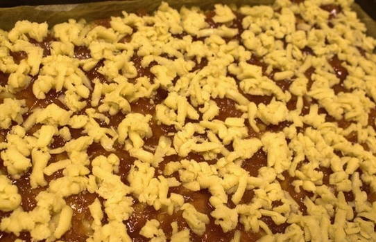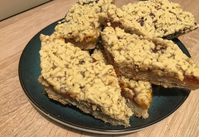 - Delicate en luchtige geraspte taart met kwark en jam in de oven