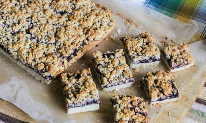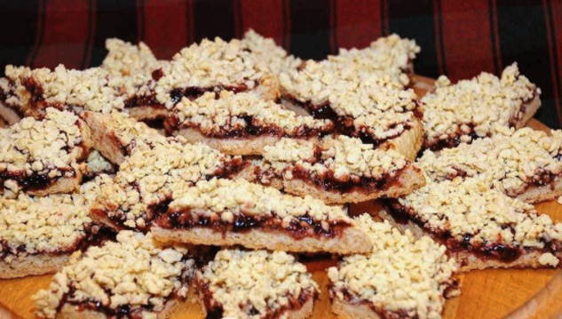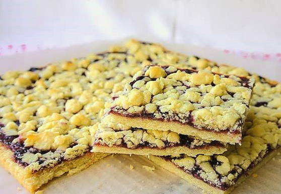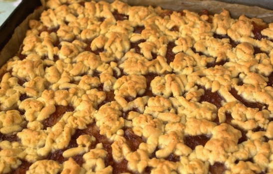 De bekende geraspte jamtaart kan volgens het magere recept gemaakt worden zonder toevoeging van eieren of andere dierlijke producten. Deze smakelijke traktatie is ook geschikt voor een veganistisch menu.